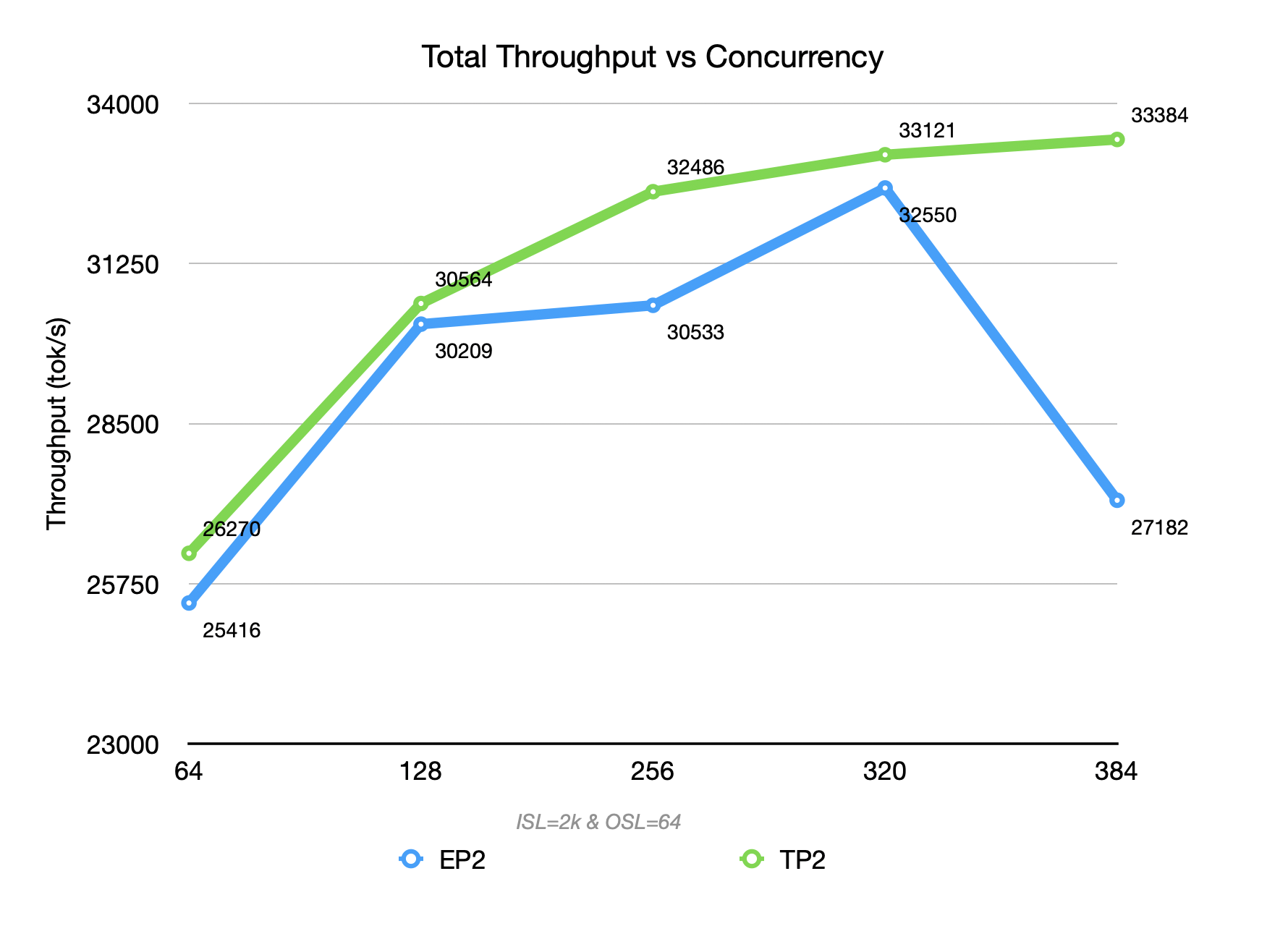 Note: The CLI parameter to switch to EP2 is -dp=2 --enable-expert-parallel.