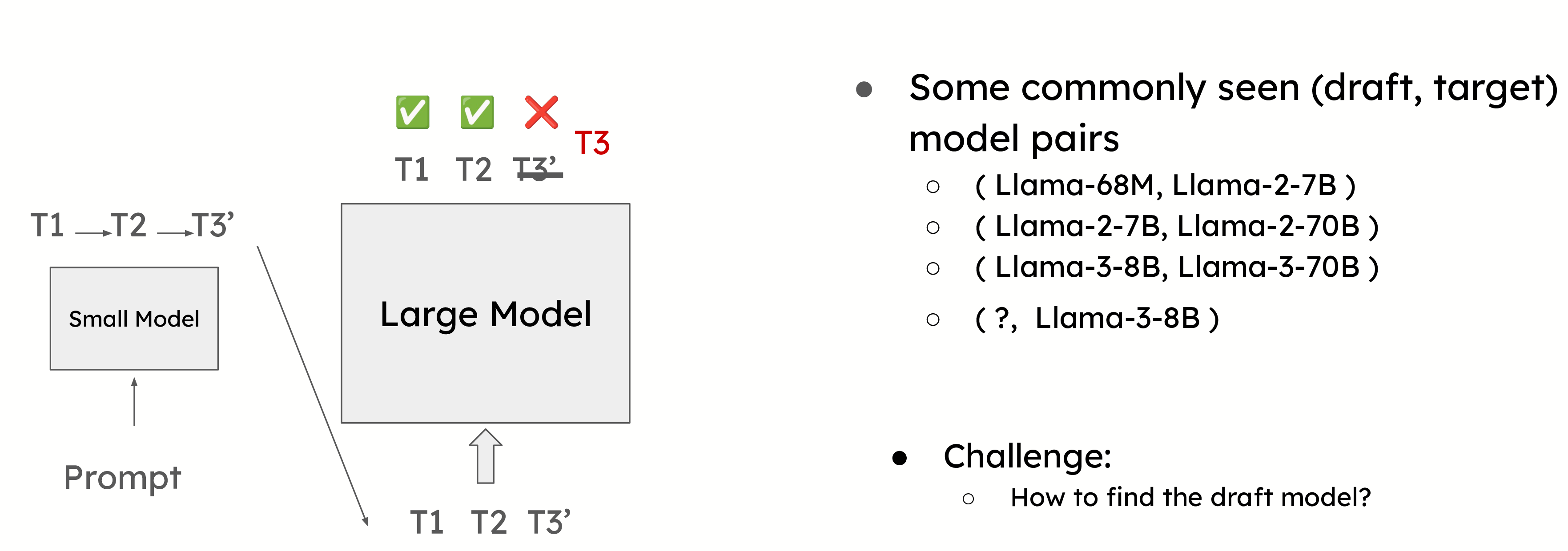 In this method, additional layers (or heads) are added to the large model itself, allowing it to predict multiple tokens in a single forward pass. This reduces the need for a separate draft model, instead leveraging the large model’s own capacity for parallel token generation. Though preliminary, this method shows promise for improving efficiency as more optimized kernels are developed.