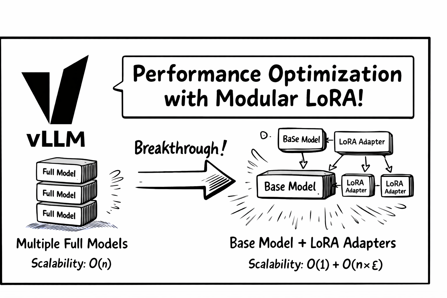Note: Here ε represents the relative cost of a LoRA adapter forward pass compared to the full base model—typically ε << 1, making the additional overhead negligible.